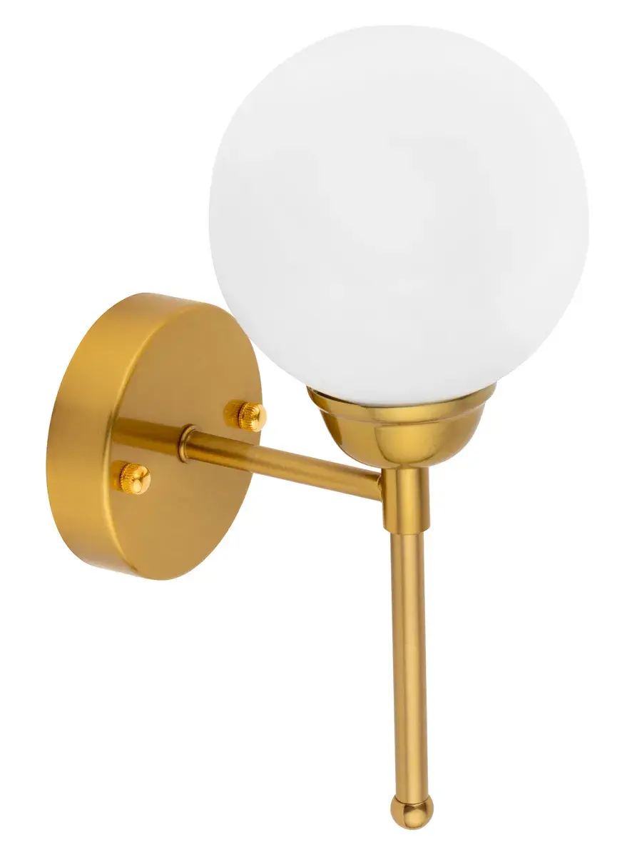 Бра Модерн шар 1х40вт станет стильным дополнением к интерьеру вашей гостиной, кабинета или спальни. Его элегантный дизайн в стиле арт-деко с латунным покрытием и белым матовым плафоном диаметром 11.5 см создаст уютную атмосферу в любом помещении. Бра оснащен цоколем G9 и рассчитан на лампу мощностью 40 Вт, что обеспечит яркое и комфортное освещение. Благодаря простому накладному монтажу, установка светильника не составит труда.