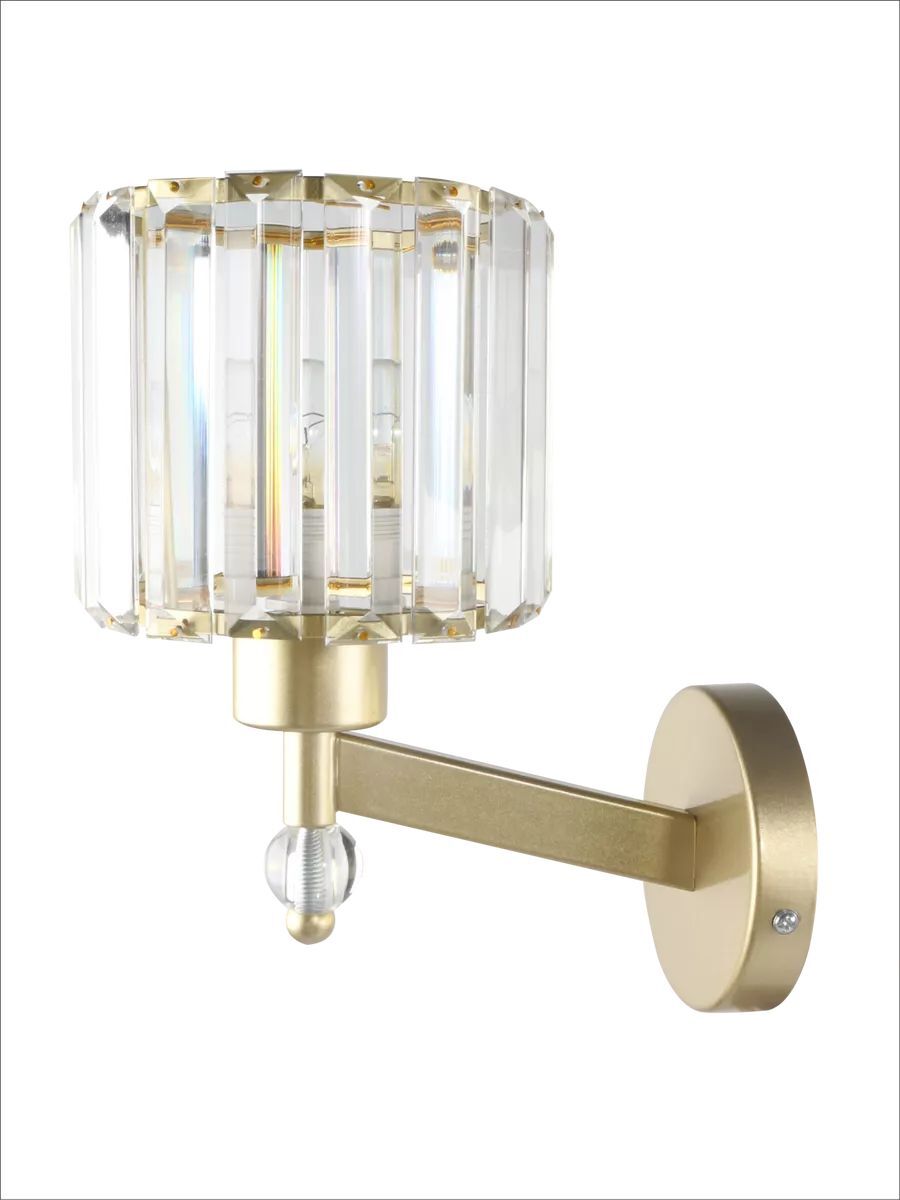 Бра настенный светильник это стильное и функциональное решение для освещения вашего дома. Бра выполнено из металла в цвете французское золото, что позволяет ему гармонично вписаться в любой интерьер и гарантирует прочность и долговечность конструкции. Цилиндрические плафоны выполнены из стеклянных пластин, что придает бра изысканный вид и обеспечивает мягкое и приятное освещение с интересным рисунком на стенах и потолке. Настенный светильник в спальню оснащен одной лампой мощностью 60 ватт, что обеспечивает яркое и равномерное освещение площади до 3 квадратных метров. Тип цоколя E27 позволяет использовать различные виды ламп, включая светодиодные, накаливания и люминесцентные. Монтаж производится на планку, соответственно установка возможна на любой тип стен - гипсокартон, бетон, дерево. . Премиальное бра в современном стиле подойдет для любой комнаты Вашего дома - для детской, спальни, гостиной, кухни, столовой и коридора. Настенный светильник с толстыми стеклянными пластинами - это не только источник света, но и стильный элемент декора, который подчеркнет ваш вкус и индивидуальность