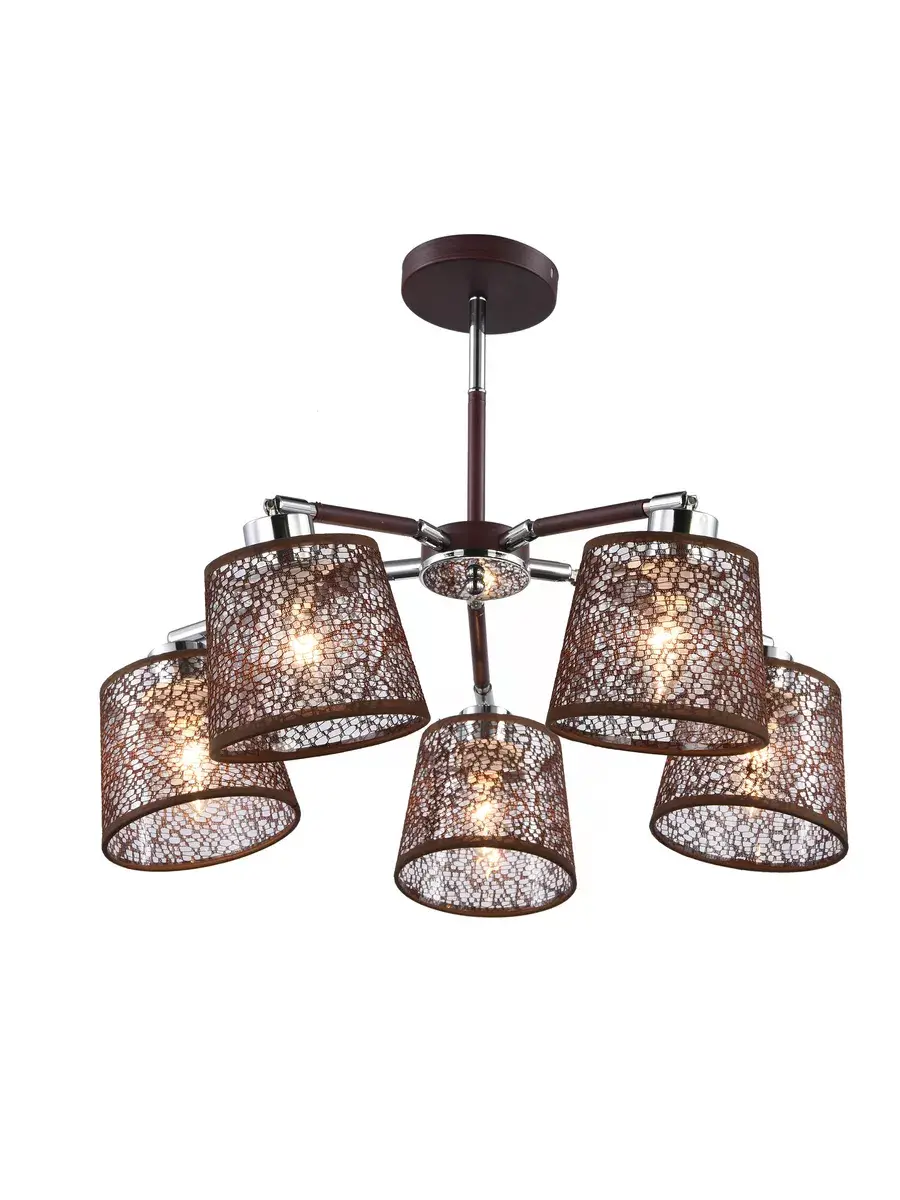 Люстра потолочная серии BRUNI изготовлена из высококачественных и безопасных для человека и животных материалов. Источник света - лампы накаливания или их светодиодные аналоги. Крепеж люстры производится накладным способом на планку, и таким образом подойдет для любого типа потолков - деревянные, гипсокартон, бетон. Вся продукция Jlight сертифицирована и отвечает высоким стандартам качества. Цоколь E27, мощностью 5*40W