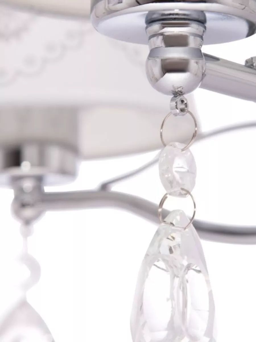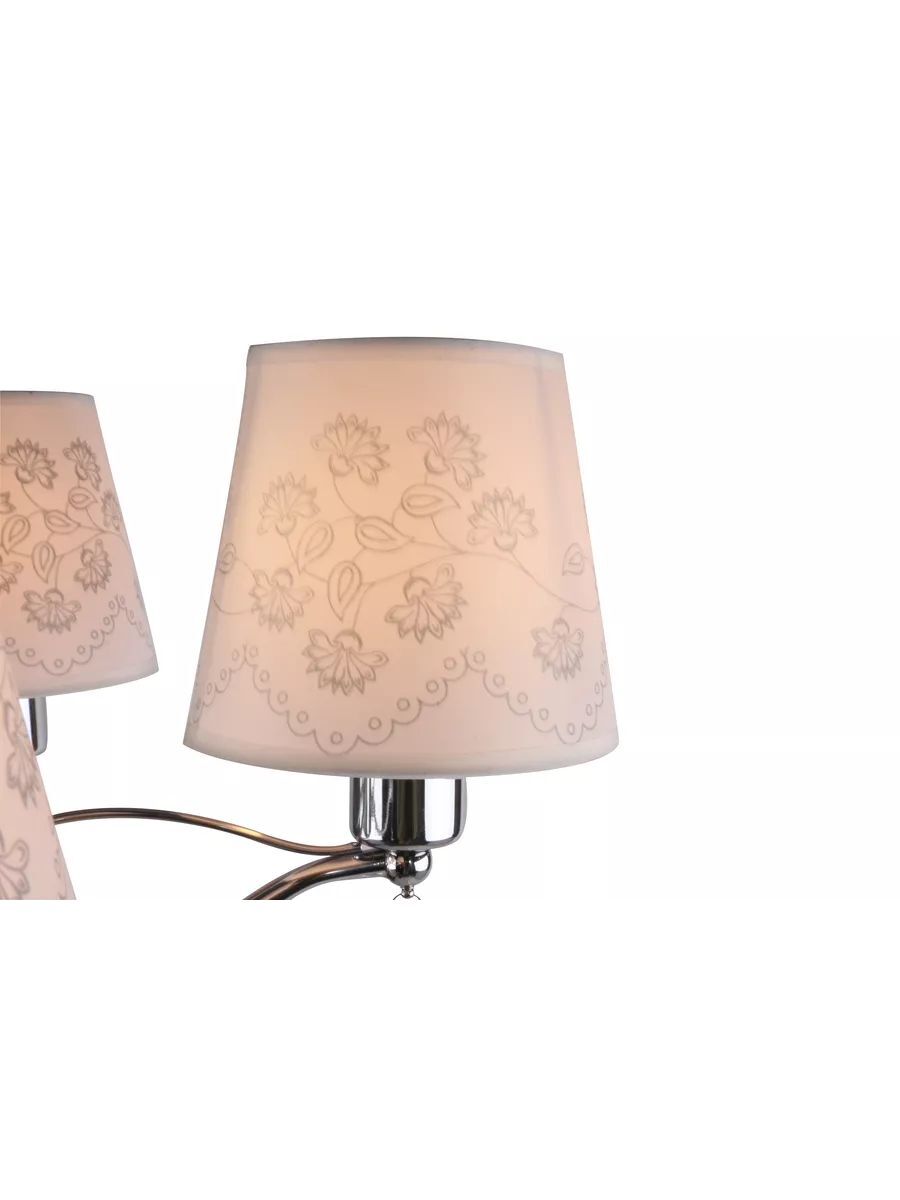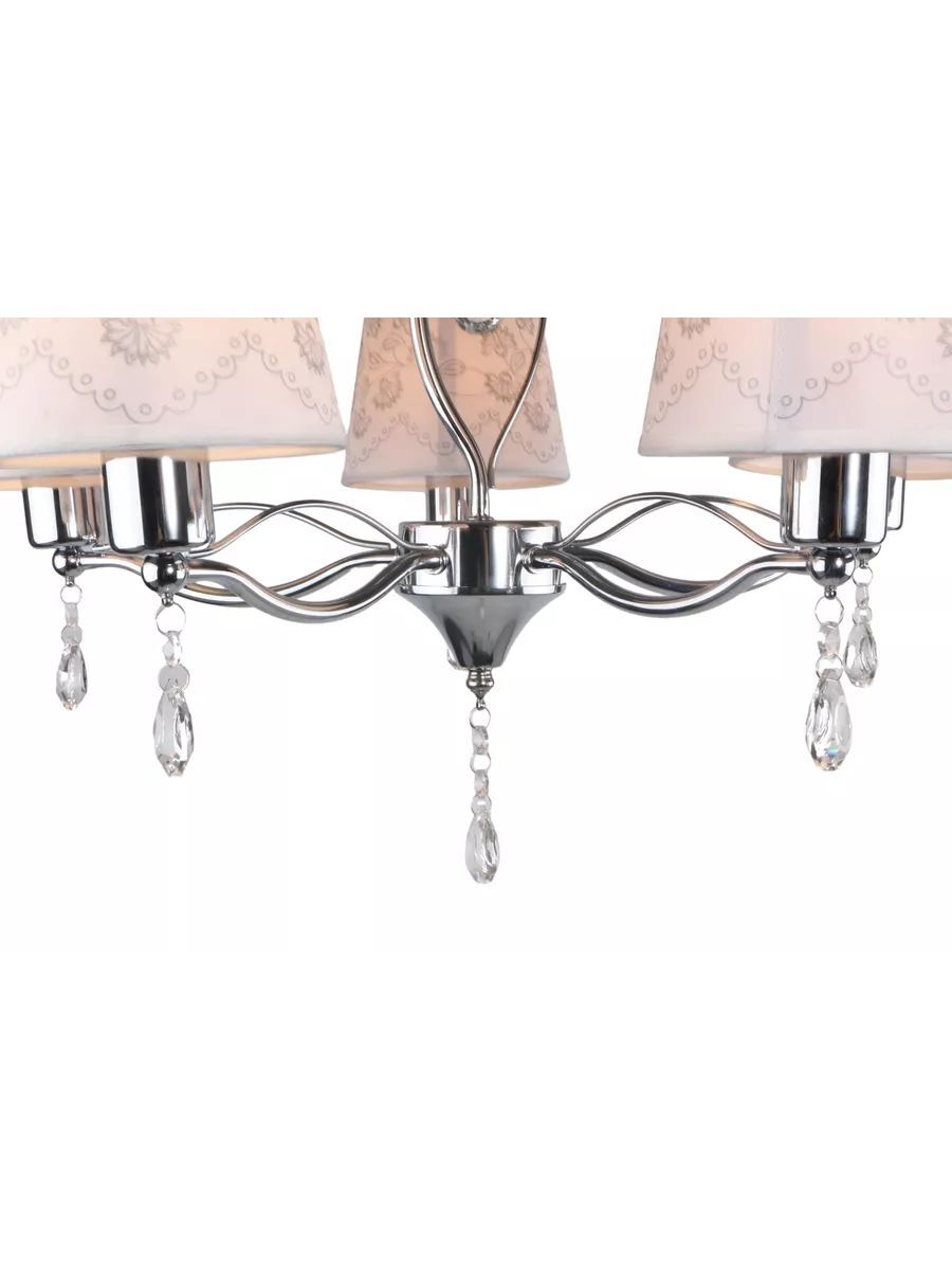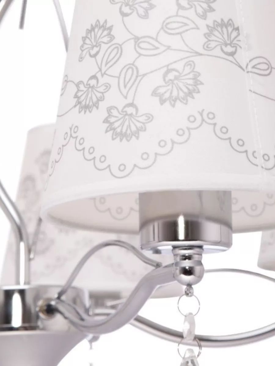 Потолочная люстра DUO HOME - это стильное и функциональное решение для освещения вашего дома. Светильник выполнен из металла в цвете хром, что позволяет ему гармонично вписаться в любой интерьер и гарантирует прочность и долговечность конструкции. Люстра оснащена текстильными плафонами в белом цвете с растительным орнаментом в совокупности с материалом декора - хрусталем придают светильнику изысканный вид и обеспечивает мягкое и приятное освещение. Светильник в спальню оснащен пятью лампами мощностью 40 ватт, что обеспечивает яркое и равномерное освещение площади 10-12 квадратных метров. Тип цоколя E14 позволяет использовать различные виды ламп, включая светодиодные, накаливания и люминесцентные. Монтаж подвесной люстры производится на крюк, соответственно установка возможна на любой тип потолков - гипсокартон, бетон, деревянный, натяжной. Габаритные размеры D570*H1200 мм позволяют установить люстру в комнату как с невысокими потолками, так и с высокими благодаря регулированию длины цепи. Люстра в классическом стиле подойдет для любой комнаты Вашего дома - для детской, спальни, гостиной, кухни, столовой и коридора. Потолочная люстра - это не только источник света, но и стильный элемент декора, который подчеркнет ваш вкус и индивидуальность