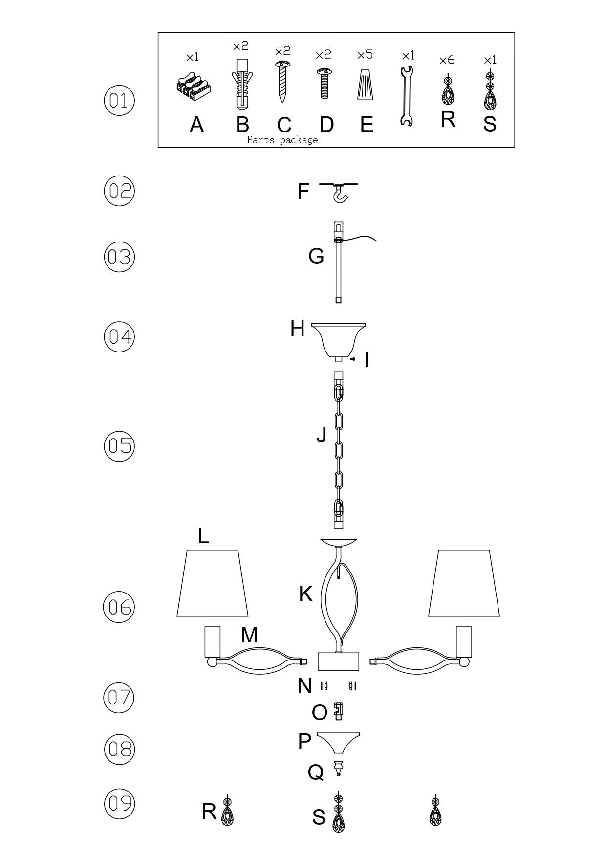люстра, монтажный комплект, инструкция
