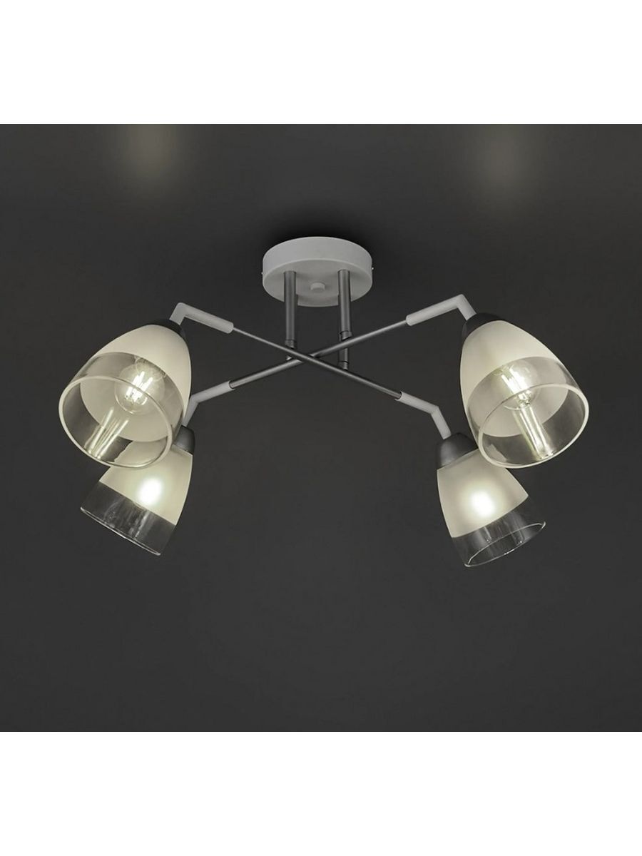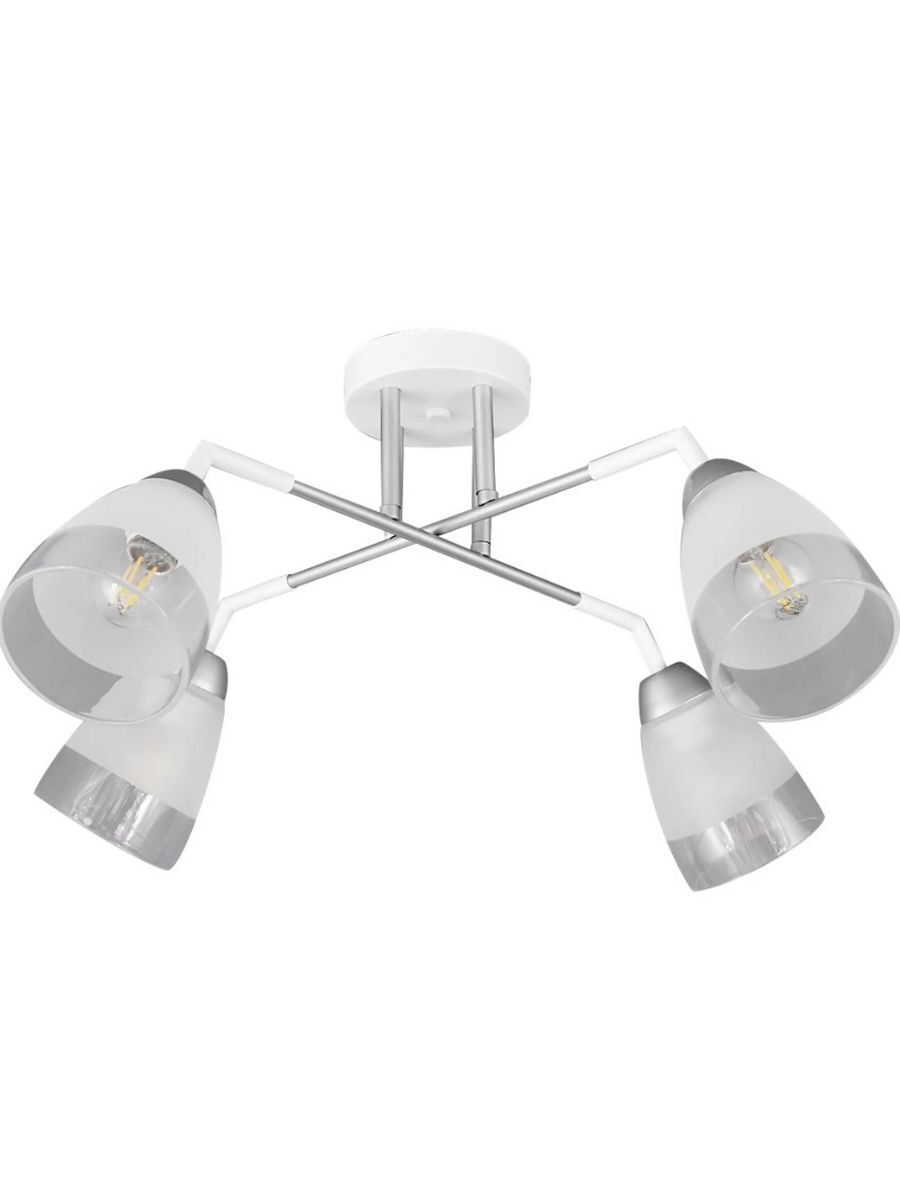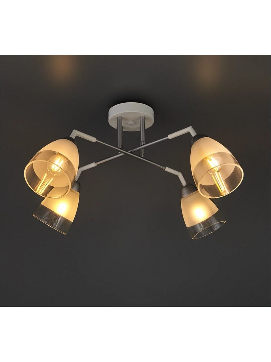 Современная потолочная люстра FOBO станет настоящим украшением Вашего дома. Габаритные размеры 640*640*300 мм. Люстра выполнена из высококачественных и надежных материалов: белоснежного каркаса с серебристыми деликатными элементами и 4 полупрозрачных стеклянных плафонов с напылением. Рожки имеют простую современную геометрическую форму, которая легко подойдёт к интерьеру любого стиля: хай-тек, модерн, лофт, классика, минимализм и даже прованс. Потолочный светильник будет отлично смотреться в любых комнатах: гостиной, детской, спальне и кухне, прихожей и зале. Люстра весьма проста в установке и подходит для потолков любого вида. Крепеж уже идёт в комплекте. Вам останется только прикрепить монтажную планку на несколько шурупов в бетон, гипсокартон, деревянный или натяжной потолок. Для натяжного потолка необходимо использовать закладную. Работает от обычного выключателя. Яркость света зависит от выбранных ламп. Как правило, используются стандартные лампы с цоколем Е27 и мощностью 4*60W. Дизайн люстры FOBO поможет наполнить приятной атмосферой ваш дом, дачу или офис. Подвесной потолочный светильник- отличный подарок на новоселье мужчине и женщине.
