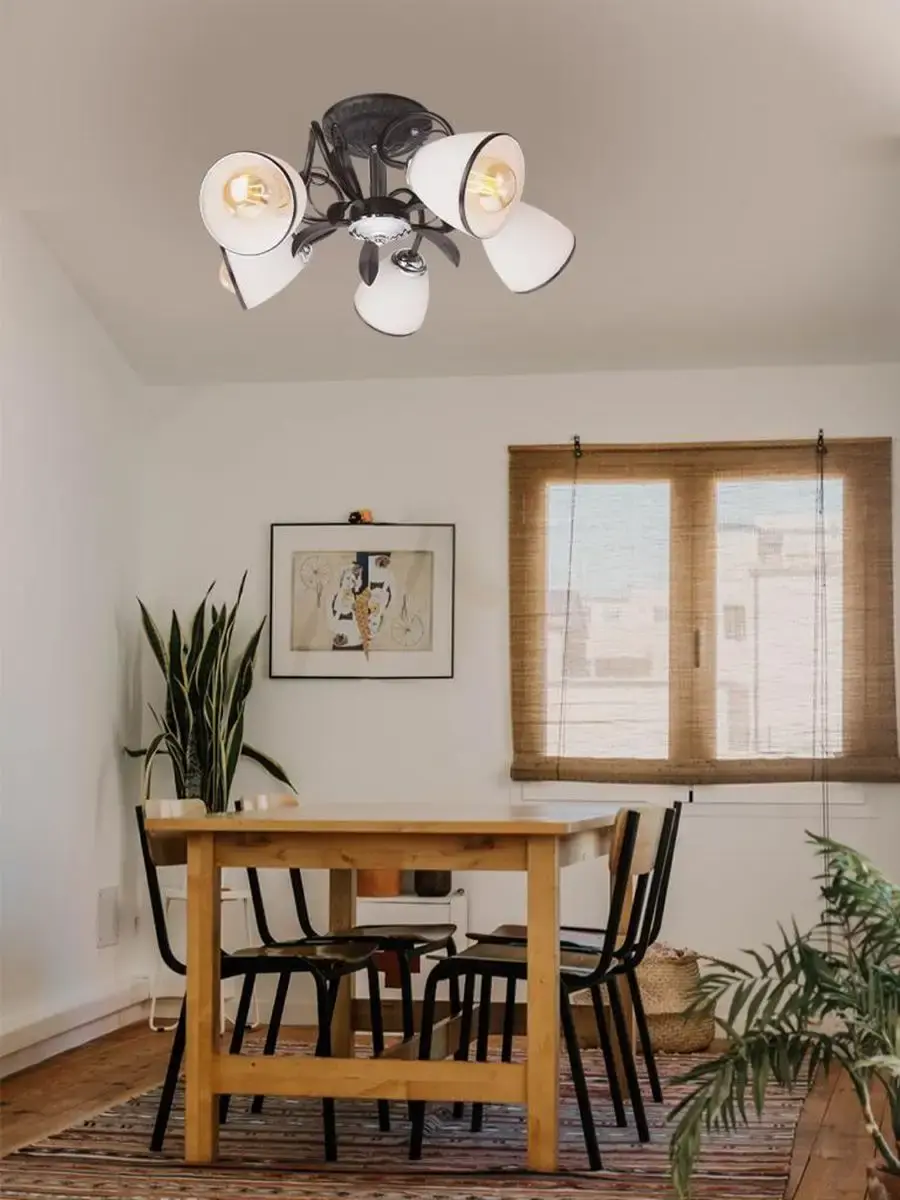 Люстра потолочная серии GERA является предствительницей классического стиля плафонных люстр. Черно-белое сочетание цветов всегда будет оставаться в тренде. Данная модель отлично подойдет для кухни или прихожей небольшой площади. Цоколь E27, мощность 5*60W. Габаритные размеры 450*450*220