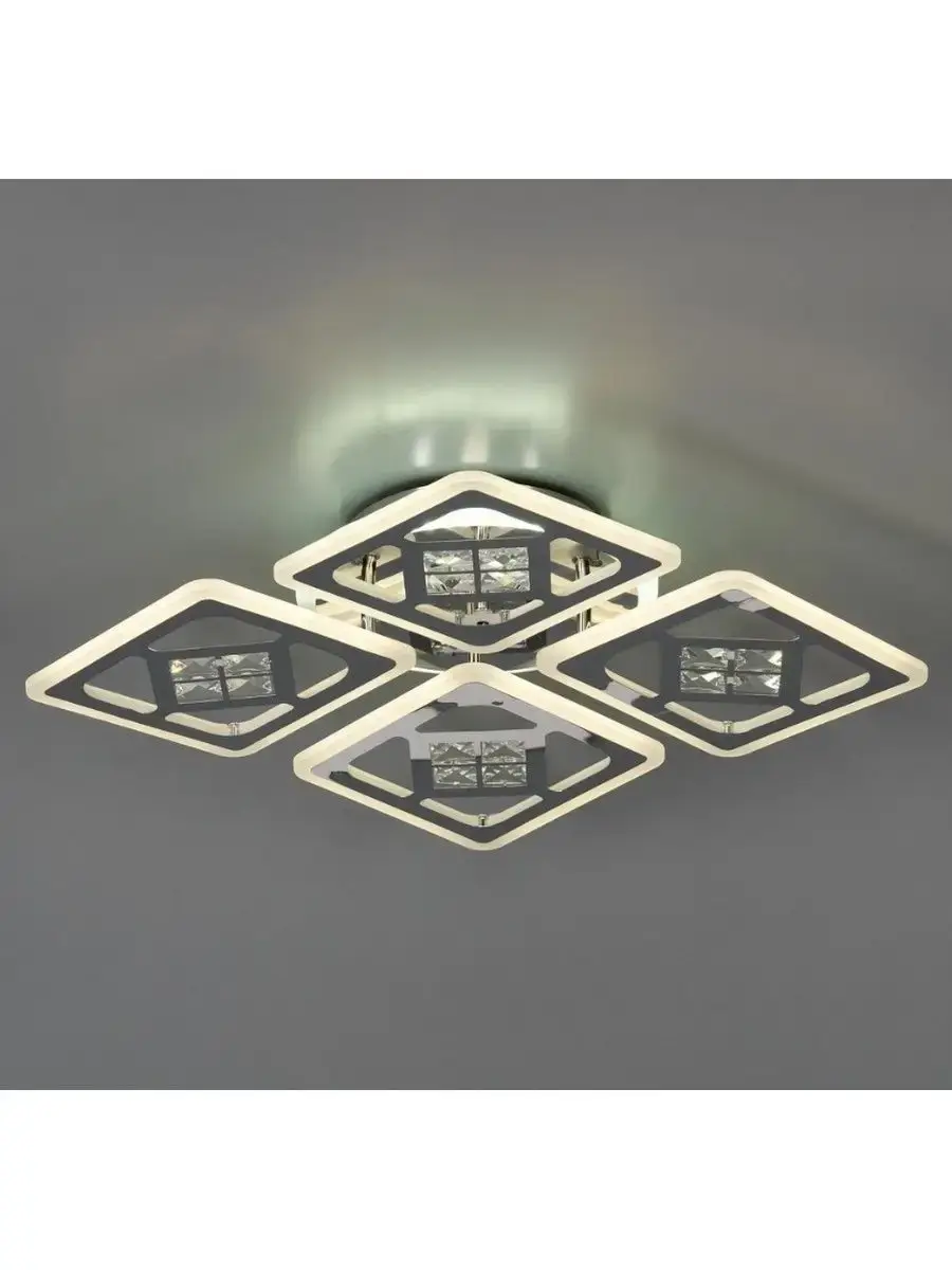 Люстра изготовлена из безопасных для человека и животных материалов. Люстра оснащена дистанционным пультом управления, с которого можно регулировать яркость и температуру света. Источник света - светодиодная лента. Крепеж люстры производится накладным способом на планку, и подойдет для любого типа потолков - натяжные, деревянные, гипсокартон, бетон. Светодиодная люстра потолочная подойдет для гостиной, для спальни, для кухни, в детскую и для дачи.