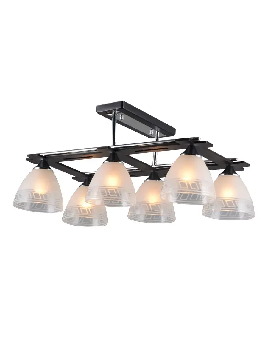 Люстра потолочная серии LOTER выполнена в стиле Модерн. Данная модель относится к семейству еврокаркасов. Оригинальная геометрически правильная арматура из металла черного цвета в форме квадрата отлично сочетается со стеклянными плафонами из прозрачного стекла с едва заметным, легким напылением. Данная модель может быть использована практически в любом интерьере за счет сочетания современных форм арматуры и классической формы плафона. Люстра изготовлена из высококачественных и безопасных для человека и животных материалов. Источник света - лампы накаливания или их светодиодные аналоги. Крепеж люстры производится накладным способом на планку, и таким образом подойдет для любого типа потолков - натяжные, деревянные, гипсокартон, бетон. Вся продукция Jlight сертифицирована и отвечает высоким стандартам качества. Цоколь E27, мощность 6*60W.
