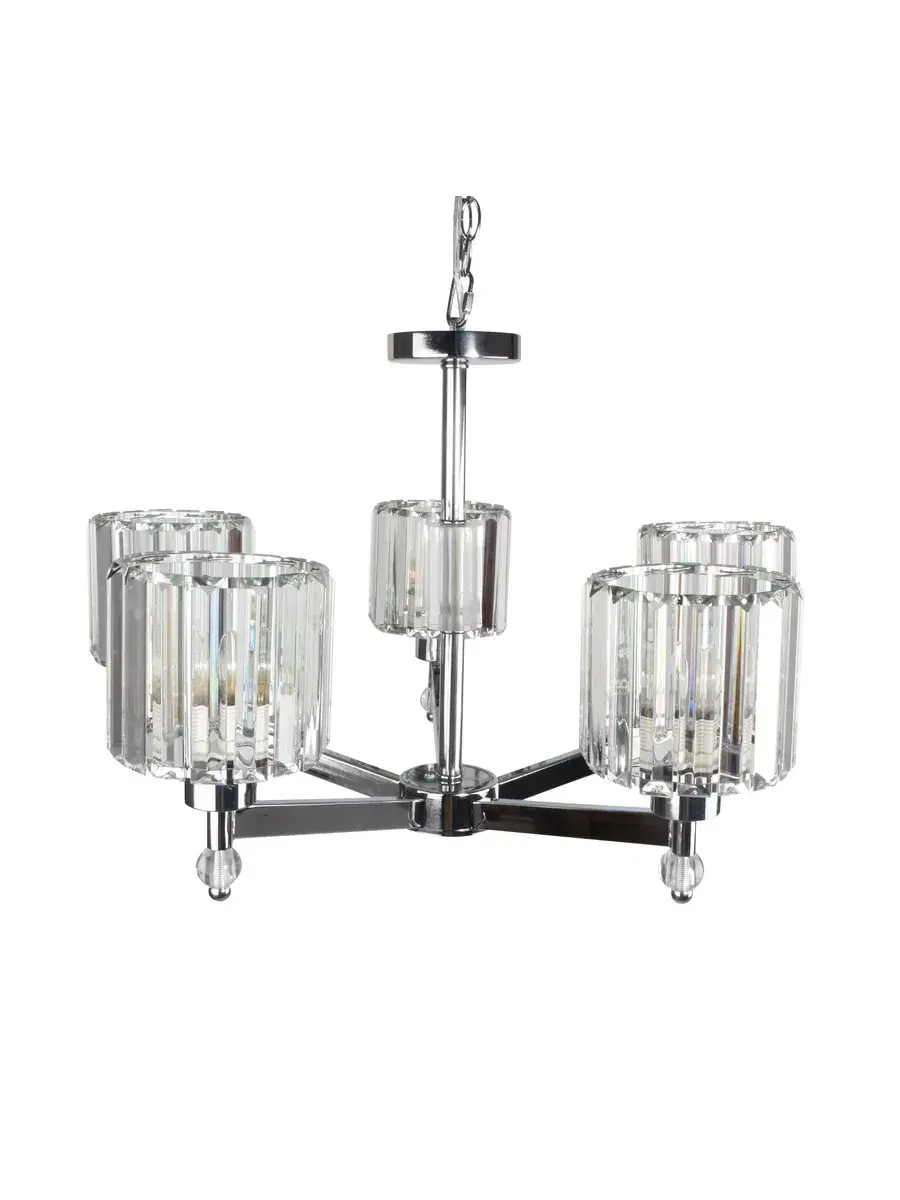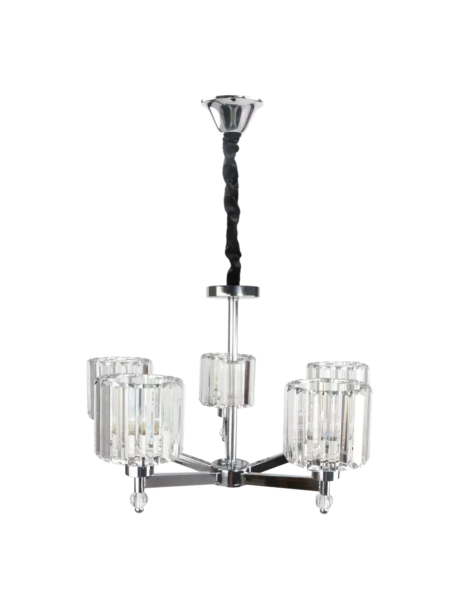Светильник в спальню оснащен пятью лампами мощностью 60 ватт, что обеспечивает яркое и равномерное освещение площади до 15 квадратных метров. Тип цоколя E27 позволяет использовать различные виды ламп, включая светодиодные, накаливания и люминесцентные.