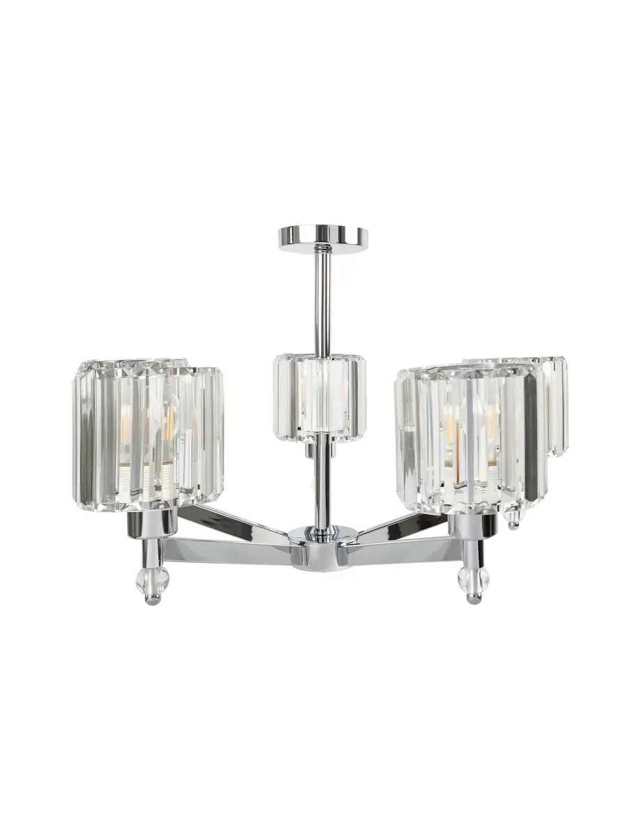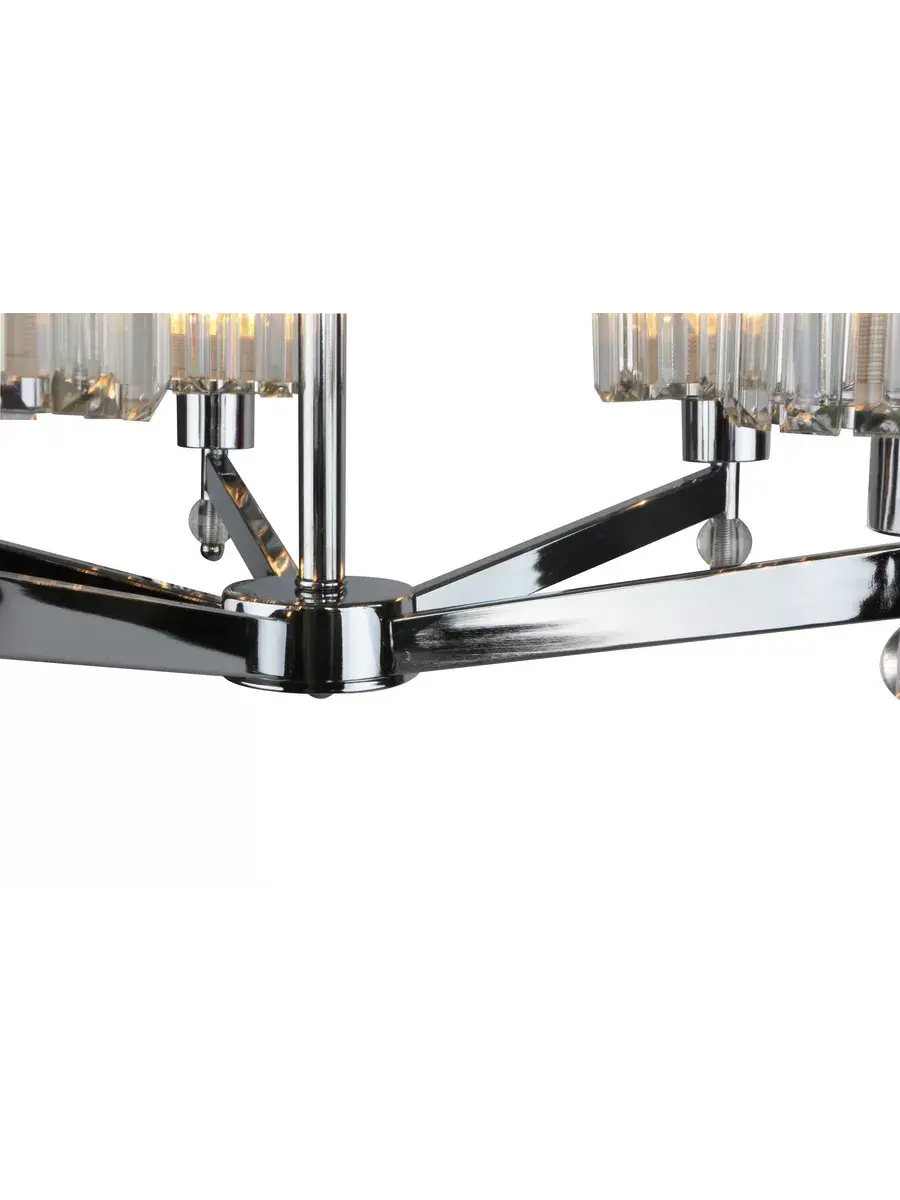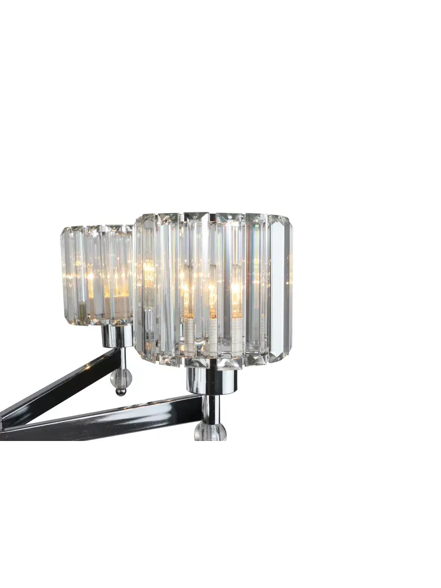 Стильный светильник выполнен из металла в цвете хром, что позволяет ему гармонично вписаться в любой интерьер и гарантирует прочность и долговечность конструкции. Цилиндрические плафоны выпполнены из стеклянных пластин, что придает светильнику изысканный вид и обеспечивает мягкое и приятное освещение с интересным рисунком на стенах и потолке.