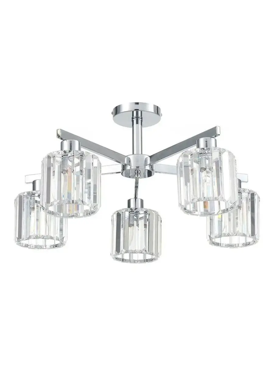 Потолочный светильник серии Premium line 5 ламп мощностью 60Вт, цоколь E27, материал изделия металл хромированного цвета и стекло. Желание купить люстру из данной коллекции появляется с первого взгляда. Элегантность и стиль, основанные на простоте – основная идея серии. Лаконичная конструкция оставляет впечатление легкости и надежности. Металлическая арматура серии представлена в цвете хром. Стеклянные плафоны с рельефной поверхностью прекрасно рассеивают свет, рисуя на потолке геометрический рисунок световыми лучами. Данная модель станет украшением интерьеров, отделанных в современной стилистике.