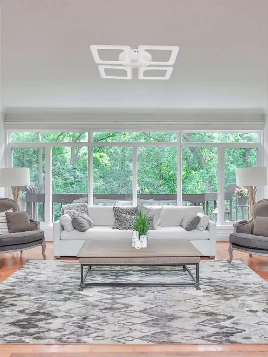 Потолочная люстра выполнена в современном стиле, используется для освещения спален, гостиных, кухонь и коридоров. Светильник изготовлен в белом цвете на металлическом основании с плафонами ромбовидной формы. Пульт ДУ позволяет управлять работой люстры включая/выключая ее, регулировать яркость светового потока, менять цветовую температуру освещения в диапазоне от 3000 до 6500 К. Осветительные элементы интегрированы в корпус изделия и не требуют приобретения дополнительных лампочек. Габариты изделия допускают его установку в помещения с невысокими потолками. Подходит для установки в системы натяжных потолков. Устанавливается на потолок с помощью монтажной планки, которая входит в комплект поставки вместе с пультом дистанционного управления. Цоколь LED, световой поток 6240LM, мощность 80W. Габаритные размеры 560х560х95мм