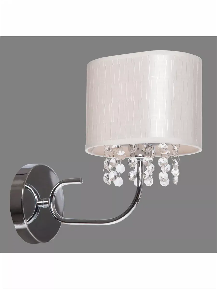 Светильник настенный серии LIKA выполнен в стиле современной классики. Хромовая арматура великолепно сочетается с перламутровыми абажурами, щедро украшенными хрустальными подвесками. Данная модель очень стильно будет смотреться как в классическом интерьере, так и в интерьере в стиле модерн. Цоколь E14, мощность 1*40W. Габаритные размеры 240*170*255